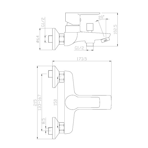 Baterija tuš jednoručna Ø 35 (bez tuš crijeva i ručice) ROCCO BIANCA