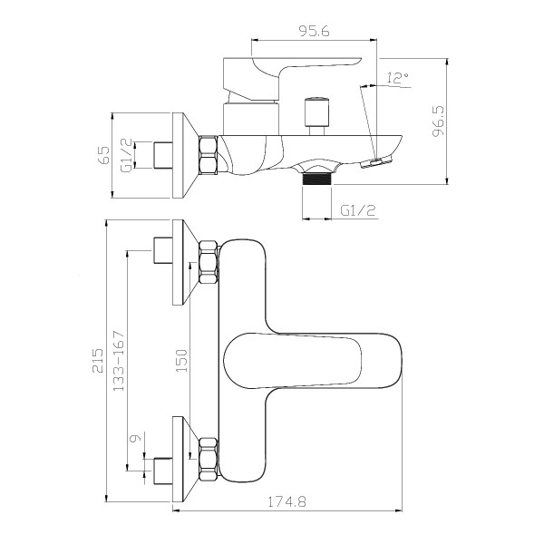 Baterija tuš jednoručna Ø 35 (s crijevom i tuš ručicom) bez izljeva ROCCO NERA