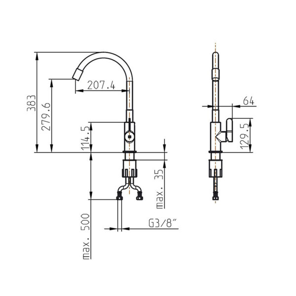 Baterija usadna s 2 cijevi jednoručna za sudoper UNITAS ELITE SLIM fleksibilni izljev količina
