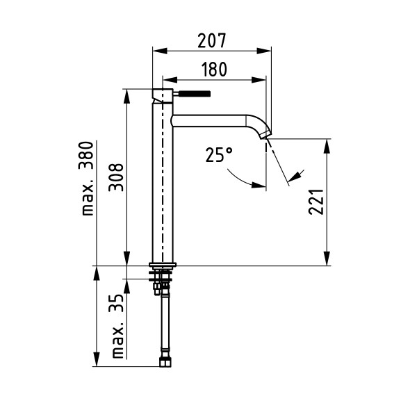 Baterija usadna s 2 cijevi za umivaonik povišena UNITAS LUMA 00620 SS brušeni čelik