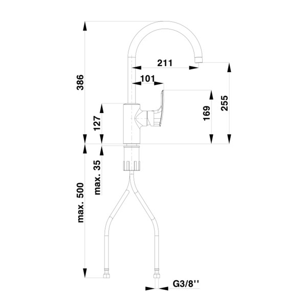 Baterija usadna s 3 cijevi jednoručna za sudoper UNITAS ELITE visoki izljev