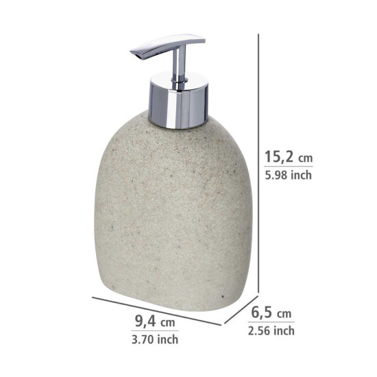 Puristička serija kupaonskih dodataka Puro donosi jednostavnu eleganciju u svaku kupaonicu. Pribor je izrađen od visokokvalitetnog poliresina i ovalnog je oblika. Dozer sapuna prirodne boje može se zasebno napuniti s do 290 ml tekućeg sapuna ili losiona za pranje. Željena količina sapuna ili losiona ispumpava se blagim pritiskom tipke za doziranje.