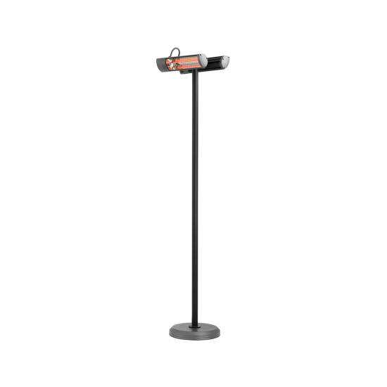 ETHERMA EXO STATIV je stojeći infracrveni radijator za vanjsku upotrebu neovisan o lokaciji. Sastoji se od postolja s okruglom betonskom podlogom i dva grijača. Oba grijača mogu se upravljati putem elektroničkog višenamjenskog prekidača na jednom od dva uređaja. Alternativno, njime se također može upravljati putem daljinskog upravljača (dostupan po izboru). Radijatori su opremljeni infracrvenom halogenom cijevi od po 1400 W. Spojni kabel je provučen kroz unutrašnjost cijevi postolja. Kućište reflektora izrađeno od visokokvalitetnog aluminija ne samo da daje moderan dizajn, već i izdržljivost.