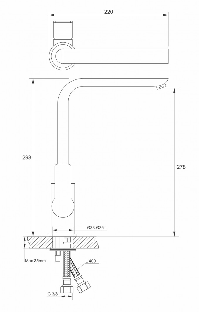 Jednoručna baterija za sudoper MINOTTI STELA 2118, labud