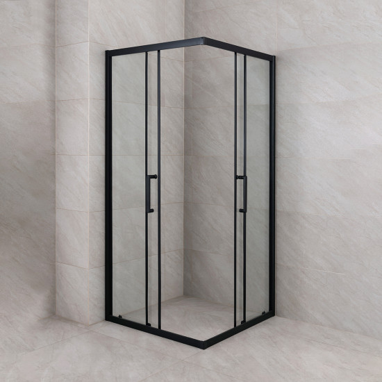 Kabina tuš h-195 cm kvadratna (prozirno staklo, crni mat profili)