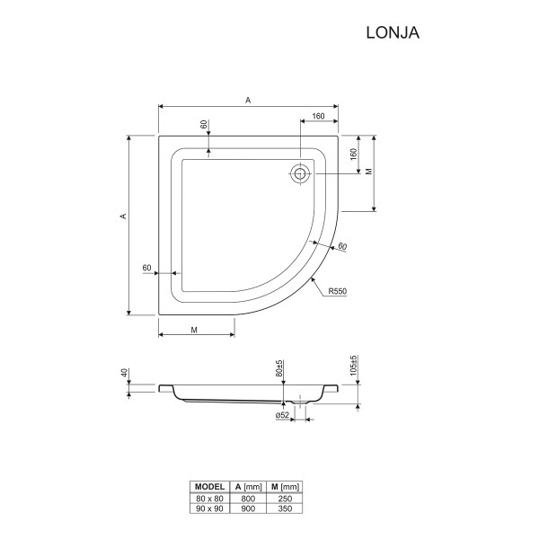 Lonja je klasična tuš kada povećane dubine i standardnog otvora sifona. Omogućuje kombiniranje sa svim standardnim modelima polukružnih tuš paravana.