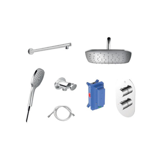 Podžbukni set – mješač,rozetna,zidni priključak,tuš ruža,nosač ruže,ručica,crijevo,držač zidni PURE&EASY KLUDI