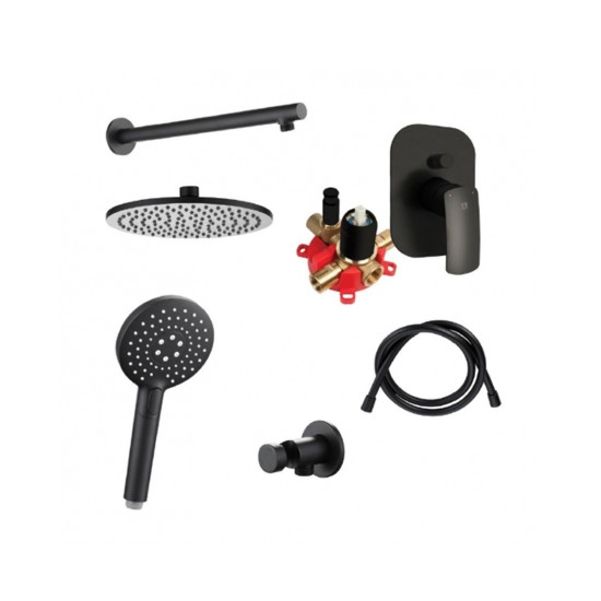 Podžbukni set ELITE CRNI (mješač,rozetna,zidni priključak,držač tuša,tuš mlaznica,ručica,crijevo,držač zidni) UNITAS BLACK količina