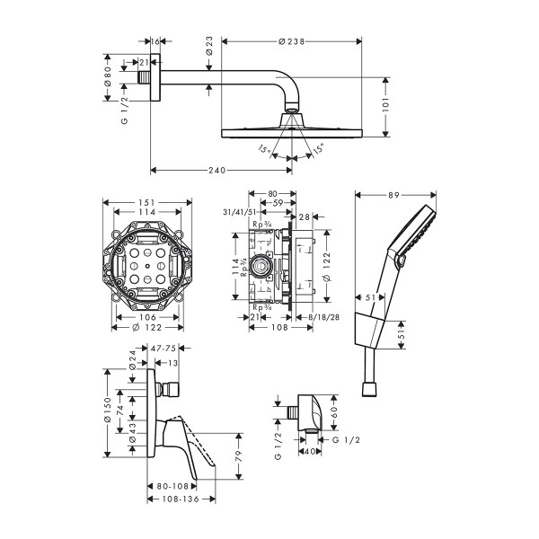 Set za podžbuknu i nadžbuknu instalaciju Crometta S 240 FOCUS HANSGROHE