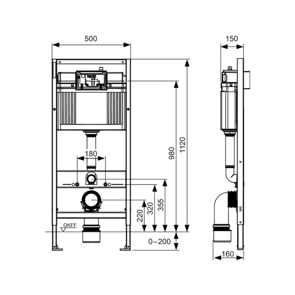 Modul za WC s „easy fit” montažom aktivacijske tipke. Za ugradnju kao pojedinačni blok, kao predzidni modul ispred masivnih zidova i za ugradnju u metalne ili drvene konstrukcije.