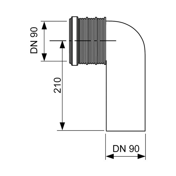 Priključno koljeno za WC, za spajanje WC modula na odvod DN 90, podesivo na tri dubine.