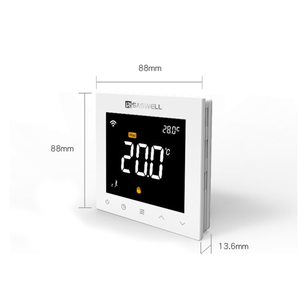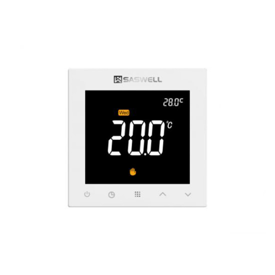 SAS922WHL-7W-S-termostat je programabilni regulator koji se koristi za upravljanje grijanjem u električnim sustavima grijanja. Upravlja vodenim ventilom, električnim grijačem, vodenom pumpom i zidnim kotlom. Posjeduje tipke na dodir i veliki zaslon od 4 inča.