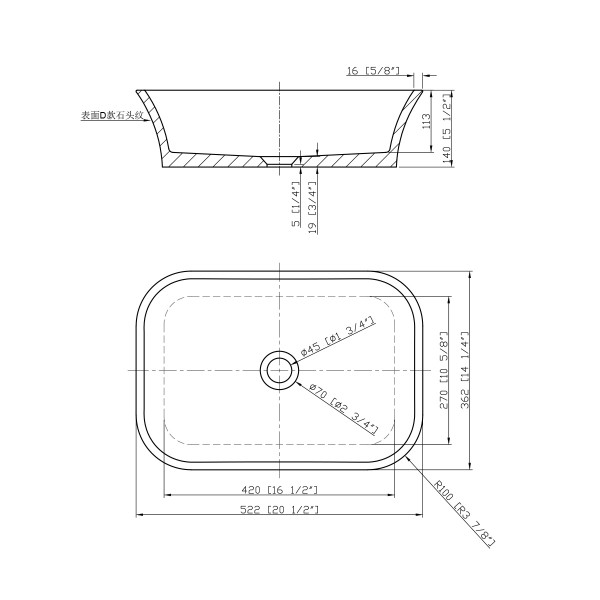 Umivaonik nadgradni 52,2 cm sivo bijeli s piletom LUNAR