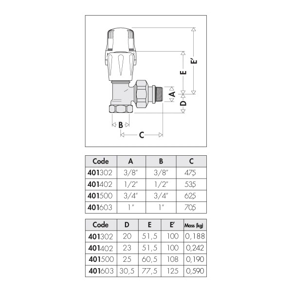 Konvertibilni radijatorski ventil za termostatske i elektrotermičke glave. Kutna verzija. Za željezne cijevi. Priključak za cijev: G 3/8” (ISO 228-1) F, ulaz, zavojiti priključak. Priključak za radijator: G 3/8” A (ISO 228-1) M, krajnji izlaz, zavojiti priključak.