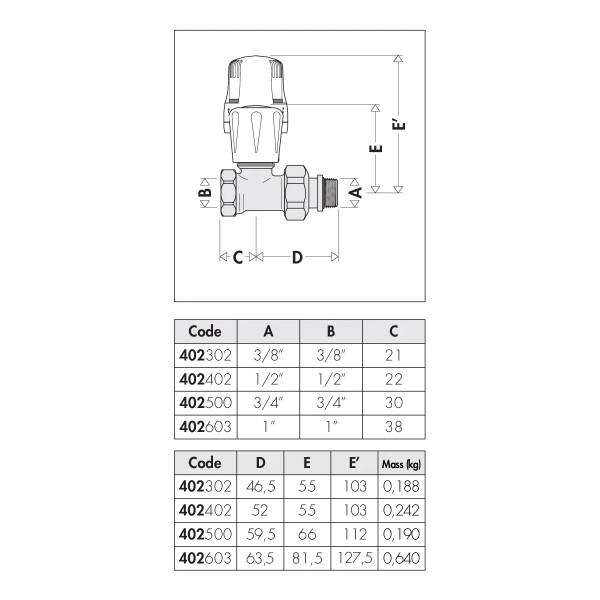 Konvertibilni radijatorski ventil za termostatske i elektrotermičke glave. Ravna verzija. Za željezne cijevi. Priključak za cijev: G 3/8” (ISO 228-1) F, ulaz, ravni priključak. Priključak za radijator: G 3/8” A (ISO 228-1) M, krajnji izlaz, ravni priključak.