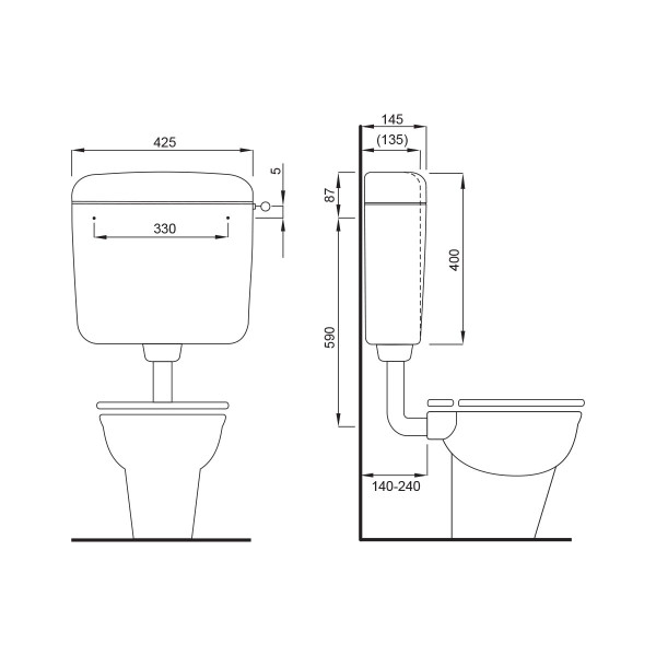 | Vanjski promjer cijevi koljeno za ispiranje na strani vodokotlića: | 50 mm |